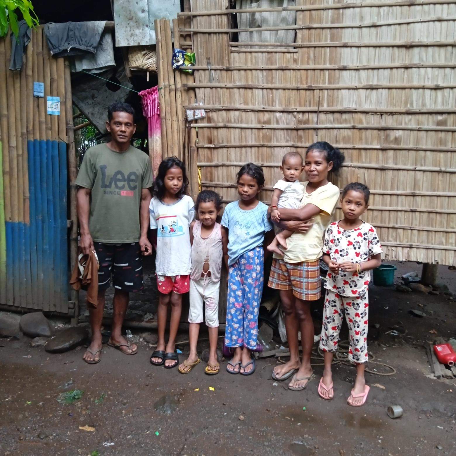 Jachel and her children in front of their home