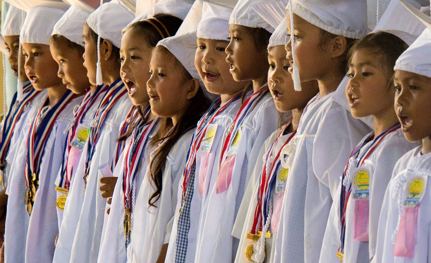 The graduations, held across seven provinces, were held in formal auditoriums. Dressed in traditional graduation robes, the children sat together, with proud, beaming parents several rows behind. Throughout the ceremony, the children displayed the knowledge they had gained over the past year with songs and recitations. Awards were given to students who had achieved excellence in various subjects.
