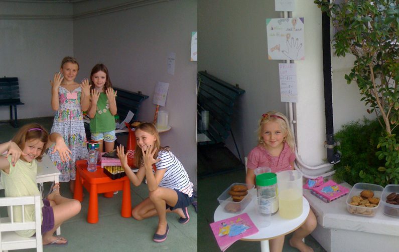 Ava (5) and Isabella (7) raised HK1,000 for poor children in the Philippines by running their own booths in the playground at their apartment building. Isabella ran a nail salon for ladies and a tattoo parlor for boys while Ava baked cookies and made lemonade. Thank you Ava and Isabella for this awesome effort, you are making the world a better place!